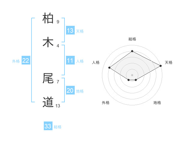 柏木 尾道さんの総格は33画の4点!