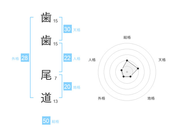 歯歯 尾道さんを姓名の画数から五運を鑑定