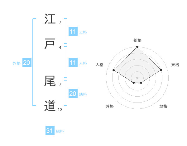 江戸 尾道さんの総格は31画の5点!