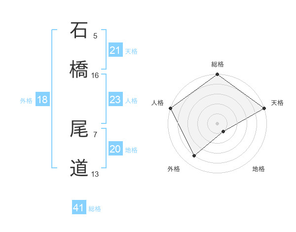 石橋 尾道さんの総格は41画の5点!