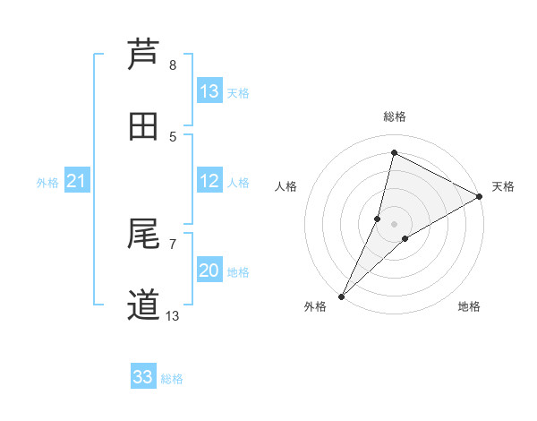 芦田 尾道さんを姓名の画数から五運を鑑定