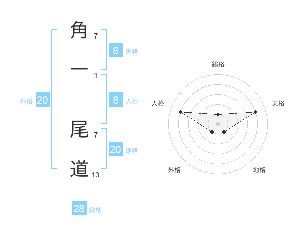 角一 尾道さんの総格は28画の1点!