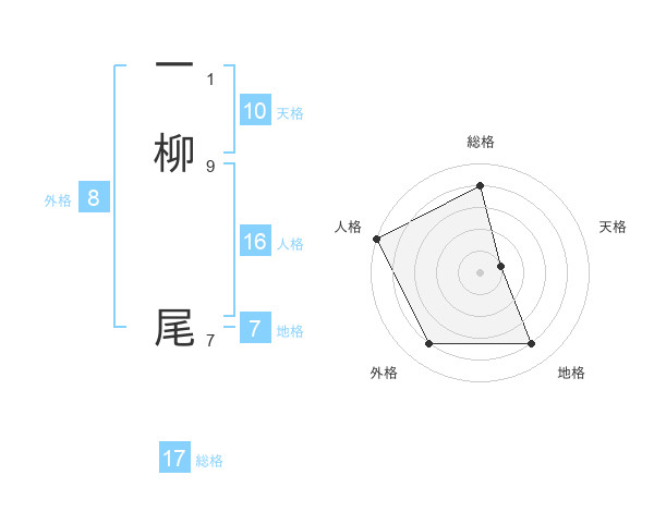 一柳 尾さんの総格は17画の4点!