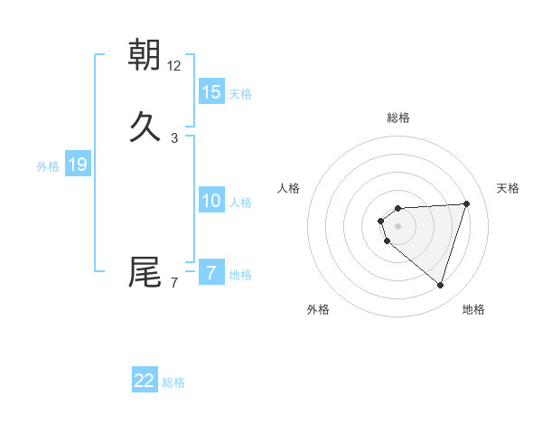 朝久 尾さんの総格は22画の1点!