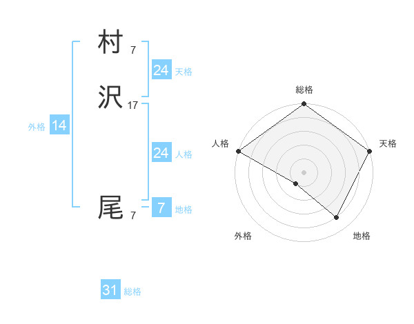 村沢 尾さんの総格は31画の5点!