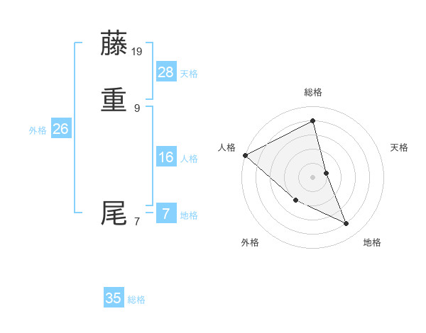 藤重 尾さんの総格は35画の4点!