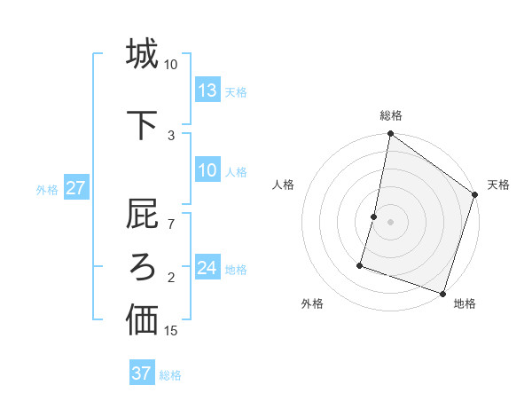 城下 屁ろ価さんを姓名の画数から五運を鑑定