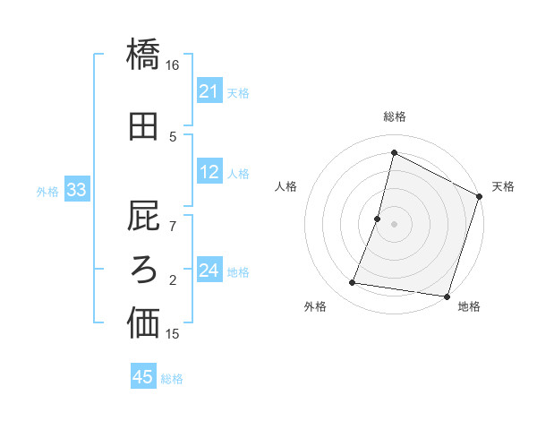 橋田 屁ろ価さんの天格は21画の5点