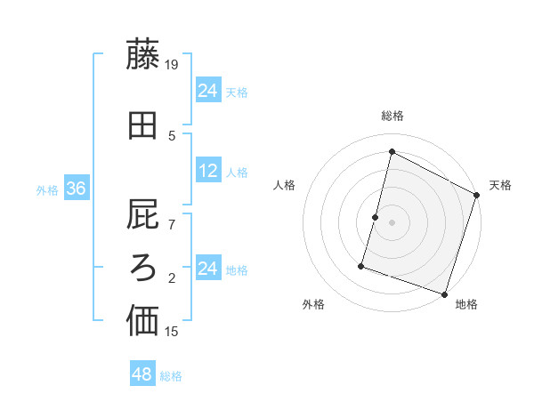藤田 屁ろ価さんを姓名の画数から五運を鑑定