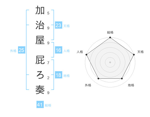 加治屋 屁ろ奏さんを姓名の画数から五運を鑑定