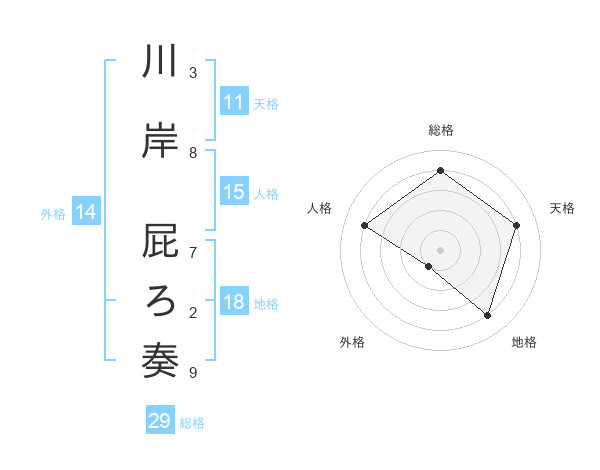 川岸 屁ろ奏さんを姓名の画数から五運を鑑定