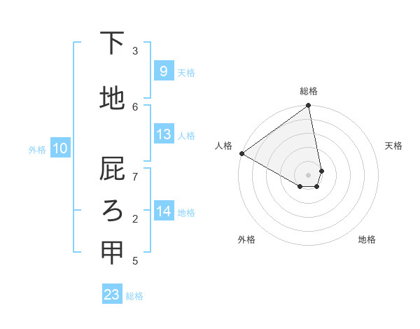 下地 屁ろ甲さんを姓名の画数から五運を鑑定