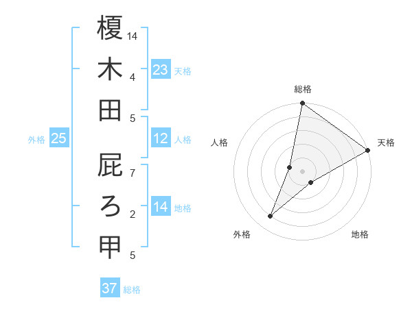 榎木田 屁ろ甲さんの総格は37画の5点!
