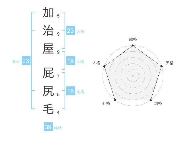 加治屋 屁尻毛さんを姓名の画数から五運を鑑定
