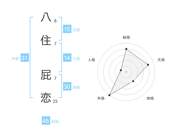 八住 屁恋さんを姓名の画数から五運を鑑定
