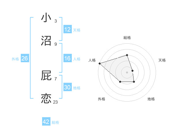 小沼 屁恋さんの総格は42画の3点!