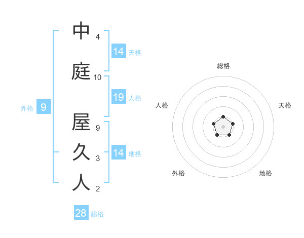 中庭 屋久人さんを姓名の画数から五運を鑑定
