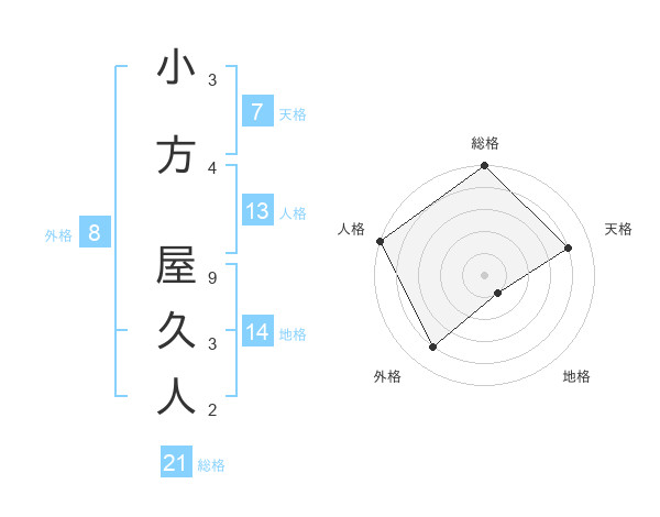 小方 屋久人さんを姓名の画数から五運を鑑定