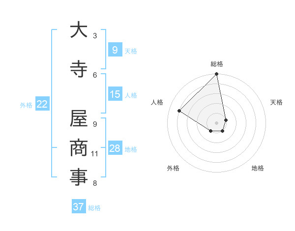 大寺 屋商事さんを姓名の画数から五運を鑑定