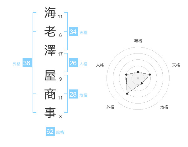 海老澤 屋商事さんの総格は62画の1点!