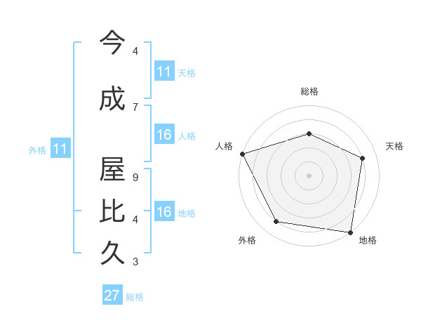 今成 屋比久さんを姓名の画数から五運を鑑定