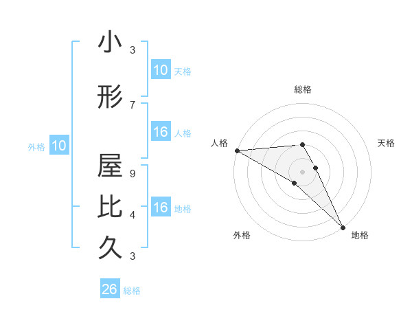 小形 屋比久さんを姓名の画数から五運を鑑定