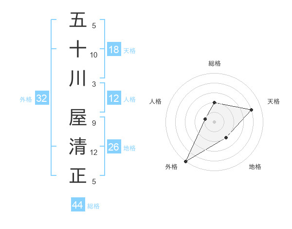 五十川 屋清正さんを姓名の画数から五運を鑑定