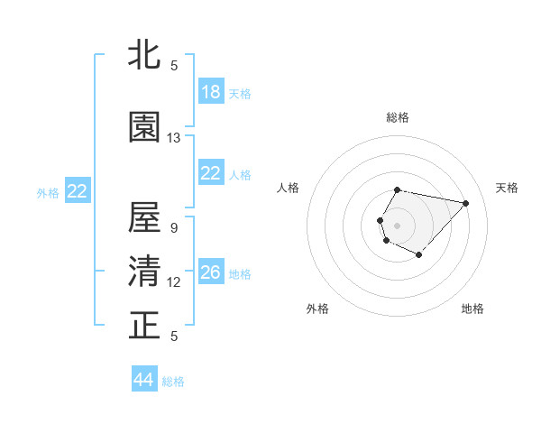 北園 屋清正さんの総格は44画の2点!