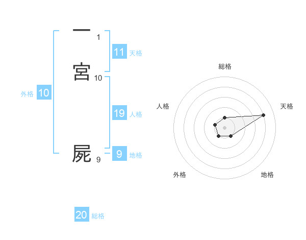 一宮 屍さんの総格は20画の1点!