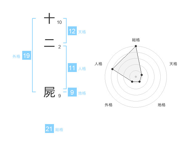 十二 屍さんの総格は21画の5点!