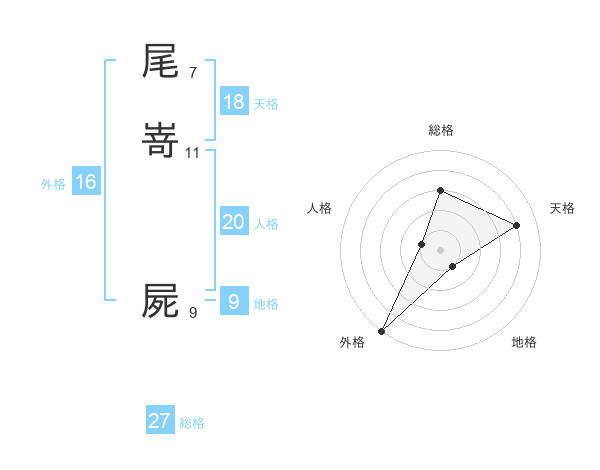 尾嵜 屍さんの総格は27画の3点!
