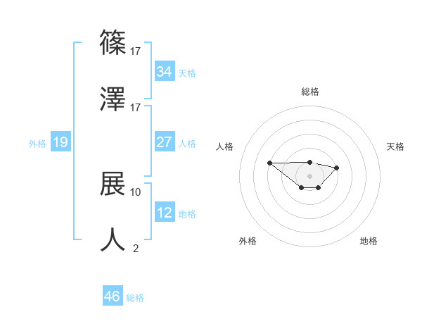 篠澤 展人さんの総格は46画の1点!