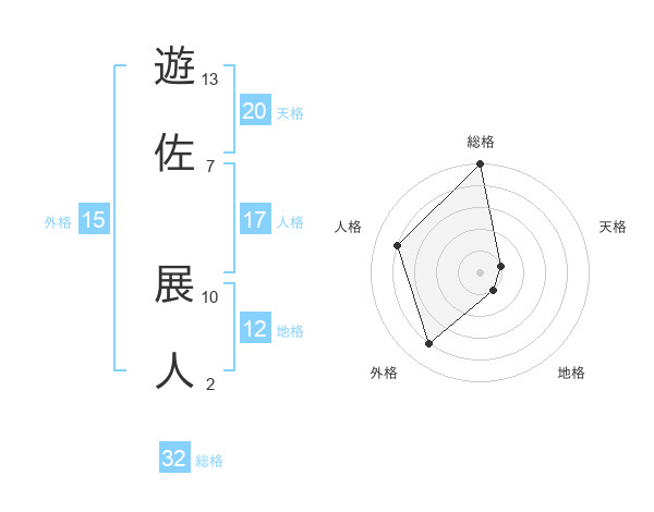 遊佐 展人さんの総格は32画の5点!