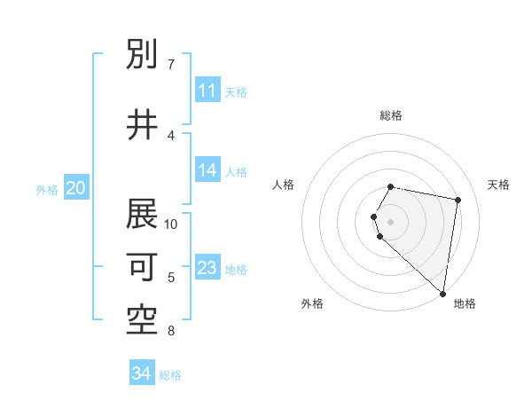 別井 展可空さんの地格は23画の5点!