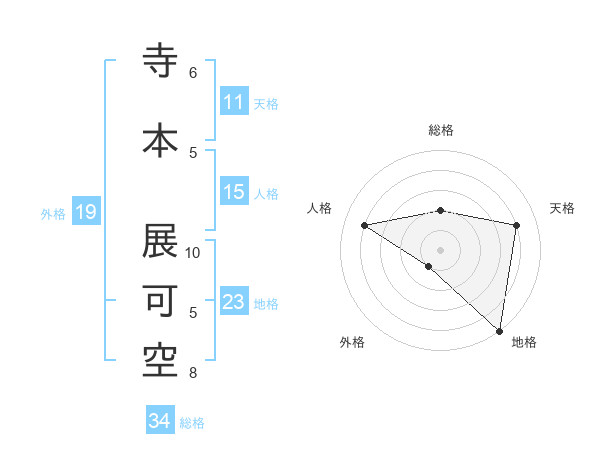 寺本 展可空さんを姓名の画数から五運を鑑定