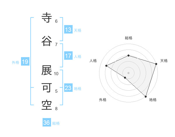 寺谷 展可空さんを姓名の画数から五運を鑑定