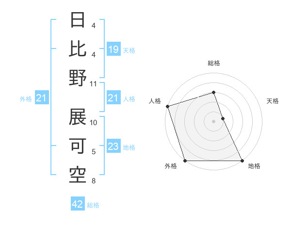 日比野 展可空さんを姓名の画数から五運を鑑定