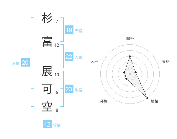杉富 展可空さんを姓名の画数から五運を鑑定
