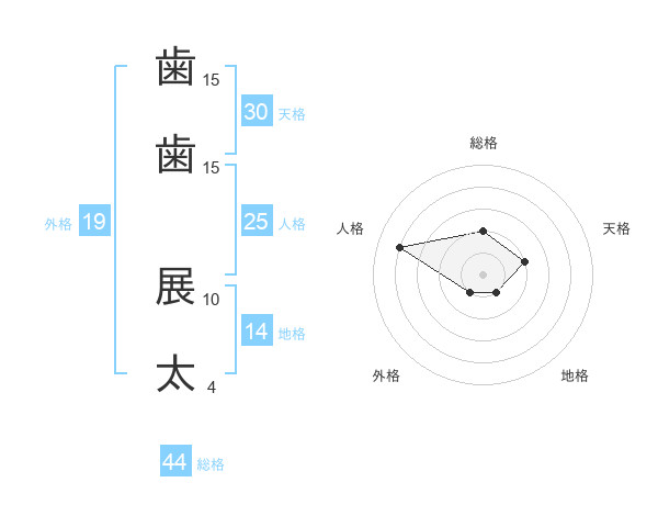 歯歯 展太さんの総格は44画の2点!