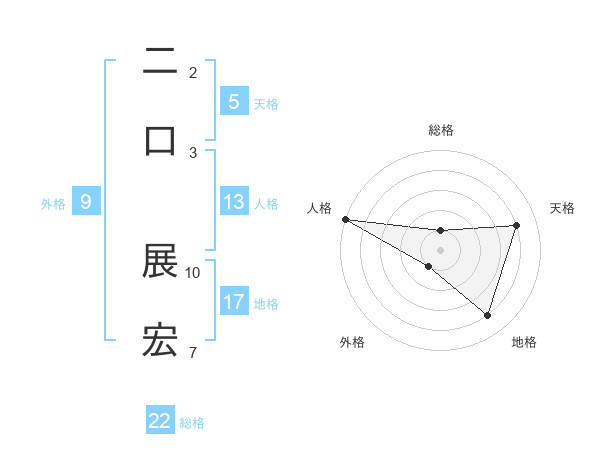 二口 展宏さんの総格は22画の1点!