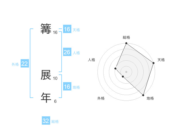 篝 展年さんの天格は16画の5点!