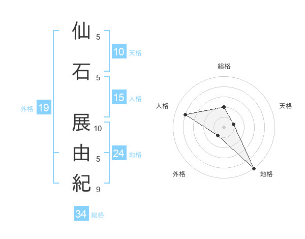 仙石 展由紀さんを姓名の画数から五運を鑑定