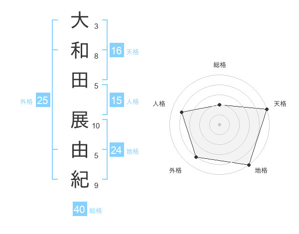 大和田 展由紀さんを姓名の画数から五運を鑑定