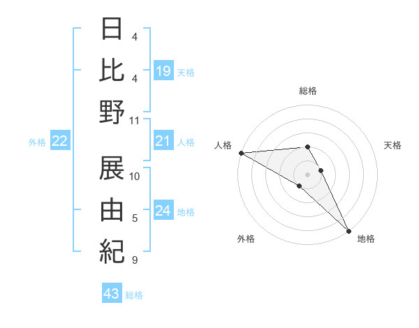 日比野 展由紀さんを姓名の画数から五運を鑑定