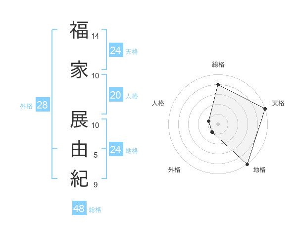 福家 展由紀さんの地格は24画の5点!