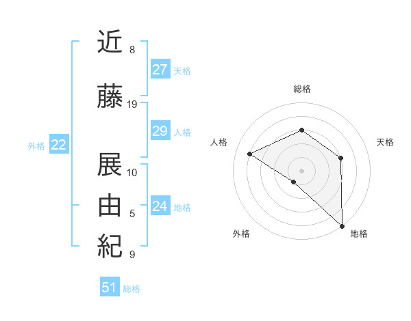 近藤 展由紀さんを姓名の画数から五運を鑑定