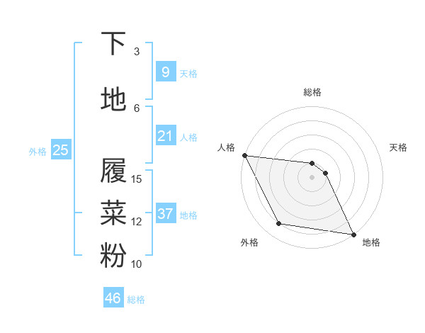 下地 履菜粉さんを姓名の画数から五運を鑑定
