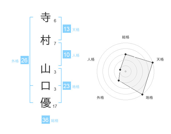 寺村 山口優さんの天格は13画の5点!