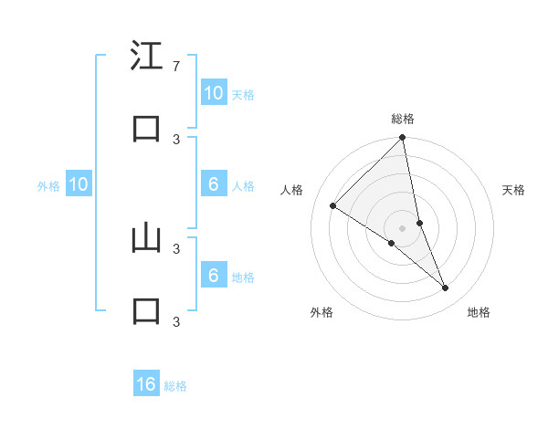 江口 山口さんの総格は16画の5点!