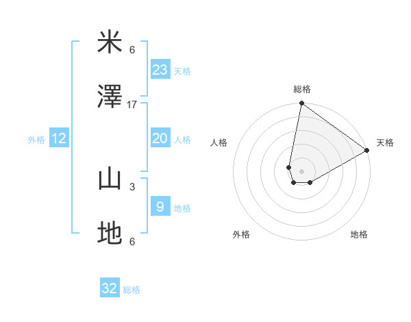 米澤 山地さんの総格は32画の5点!